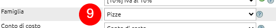 Inserisci il codice iva (9) e valorizza il campo Famiglia con il valore Birre (10):