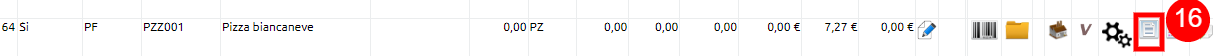 Per ciascun record, sono disponibili diverse funzionalità (modifica, files, distinta base, ecc) (1):appresso la spiegazione delle icone.